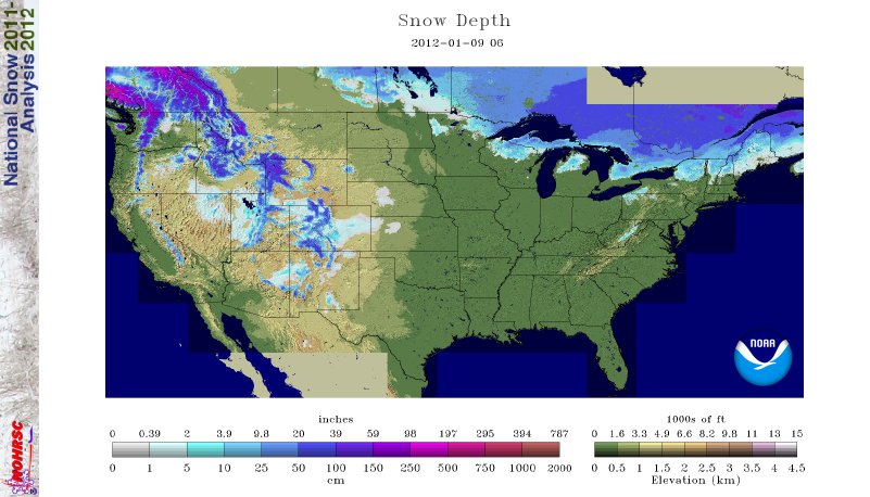 Now, check this map of United States Snow pack from January 9, 2012 (this year):