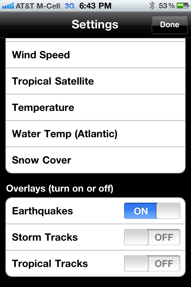 That opens this list of items you can choose to display on your map. Scroll down to the “overlays” section and slide earthquakes to the on position. That’s it.