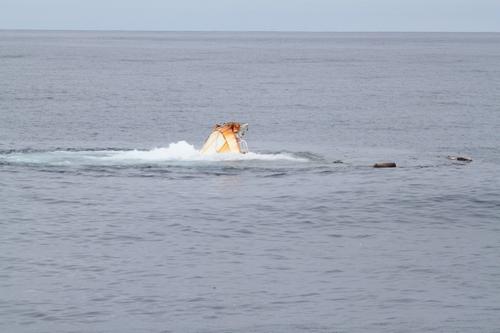 This picture shows members of the Coast Guard crew dropping a “Self Locating Data Marker Buoy” (they call it an SLDMB, of course!) right near the tsunami ghost ship.This will track its exact location on April 4 and April 5, 2012 so they can find it to sink it.