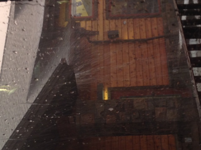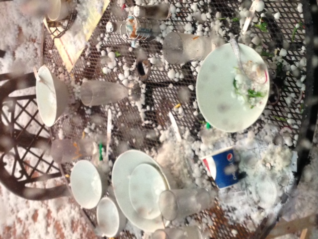Then he started texting about marble sized hail–and sending images of outdoor tables suddenly abandoned by families that had to make a run for it as the hail hit.