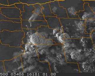 See the big ‘blob’ in the center of the image? It’s fairly typical of how a massive thunderstorm (or group of them) appear from space. They stand out because the cloud tops shoot higher in the sky than others, creating that brighter, pillowy looking shape.