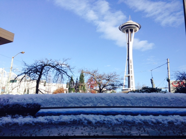 photo 2 This was the top of my car with a dusting of snow as I came out of the news studio after several hours of extended snow coverage. Dry and cold air took over behind the storm as you can tell by all the sunshine around the Space Needle.