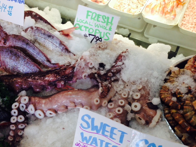 photo 3 And finally, the month ended with another cold blast. This picture shows fresh Octopus on ice at Pike Place on Sunday November 30th. But it was so cold in Seattle that just putting it out on a plain table probably would have been good enough.