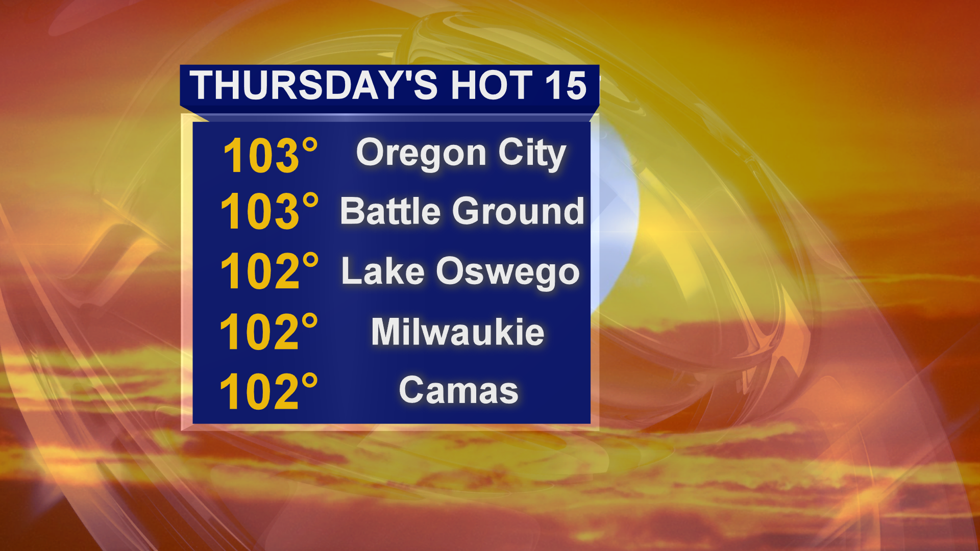 Portland Heat Wave: Thursday’s “Hot 15” & Portland vs. Phoenix