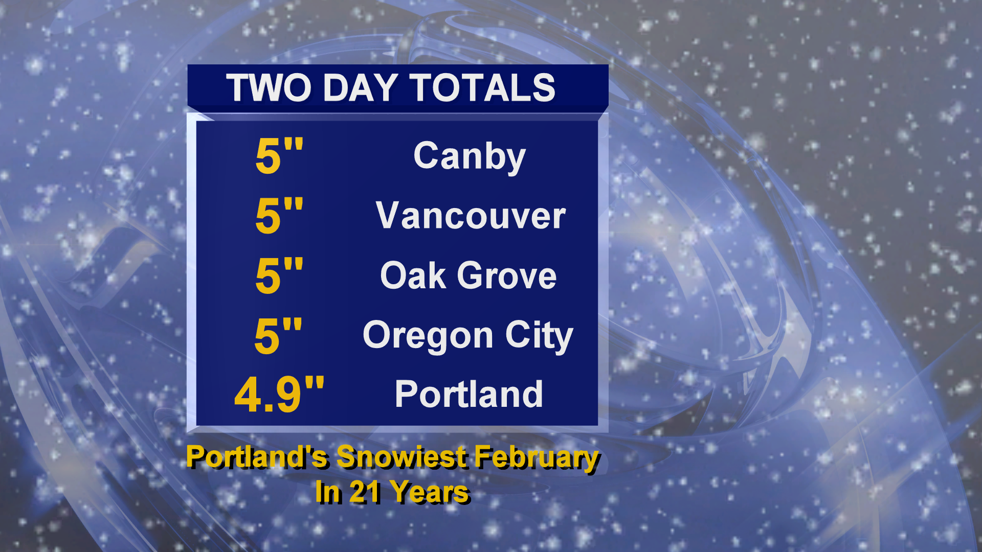 Both the Ducks and the Beavers beat the home of Portland State. The official Portland snow total was 4.9″ from February 7 & 8 2014. That makes this Portland’s snowiest February in 21 years! Here are some more totals.