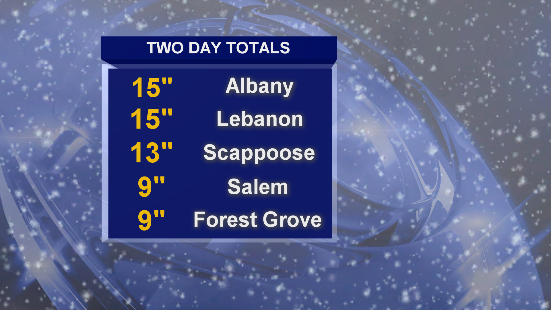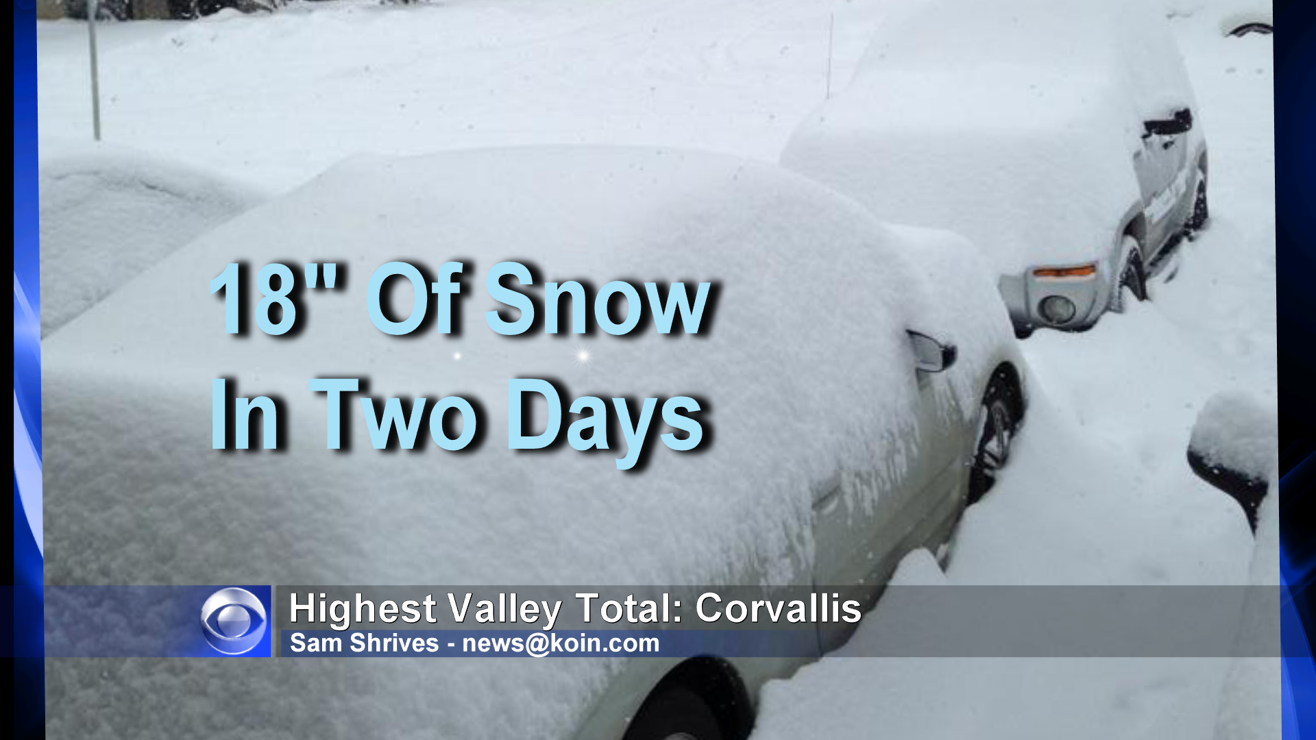 And this time, it looks like the Beavers win! (I think I’m hearing a ‘boo’ of a ‘yay’ depending on your feelings…) Eugene measured 9.5″ of snow from back to back storms and Corvallis measured an amazing 18″ of snow. Wow.