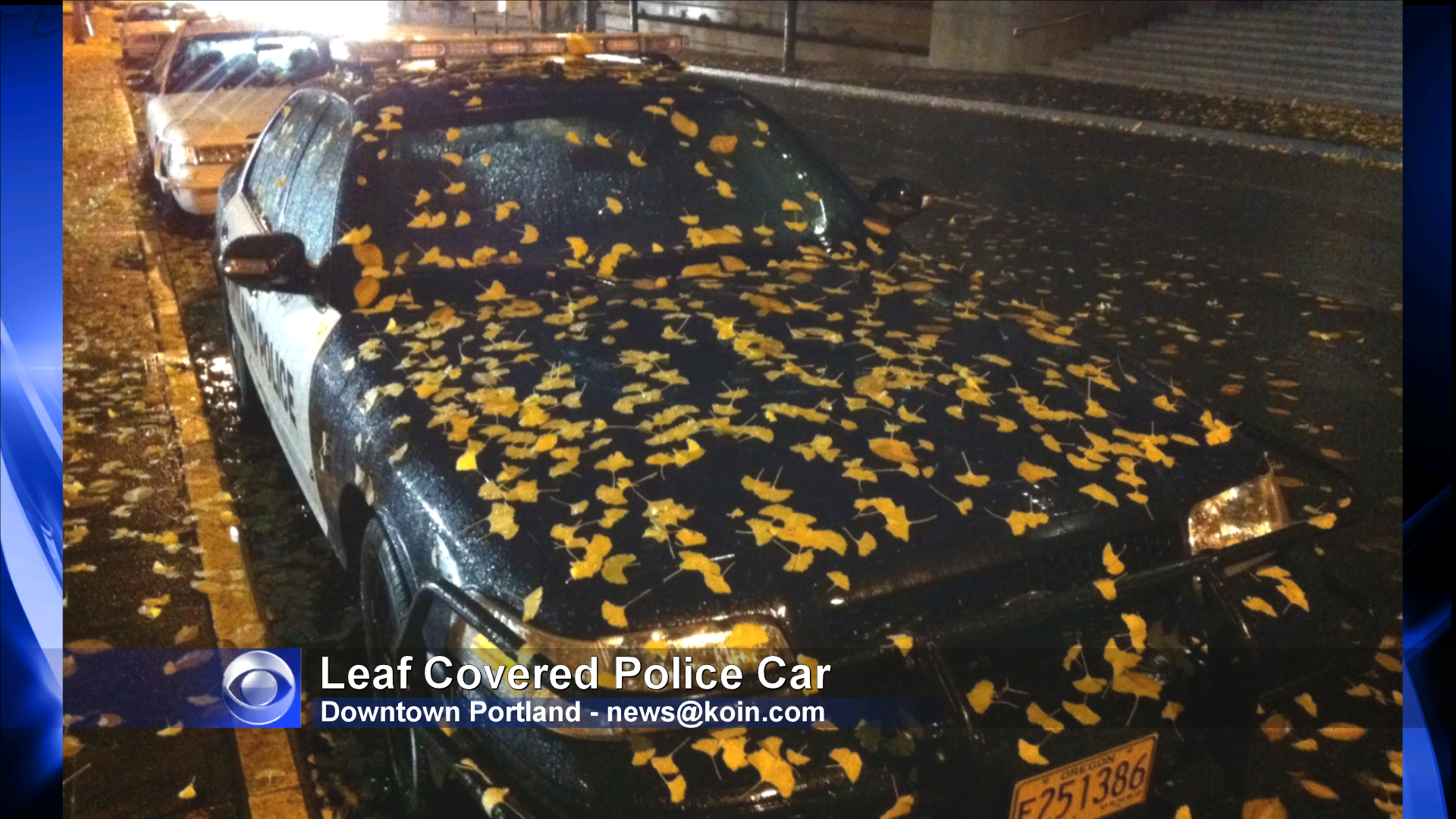On my dinner break I came across this leaf covered Portland Police Car–just outside the former Occupy Portland Camp. Guess you could say these leaves are now ‘occupying’ the Police car!