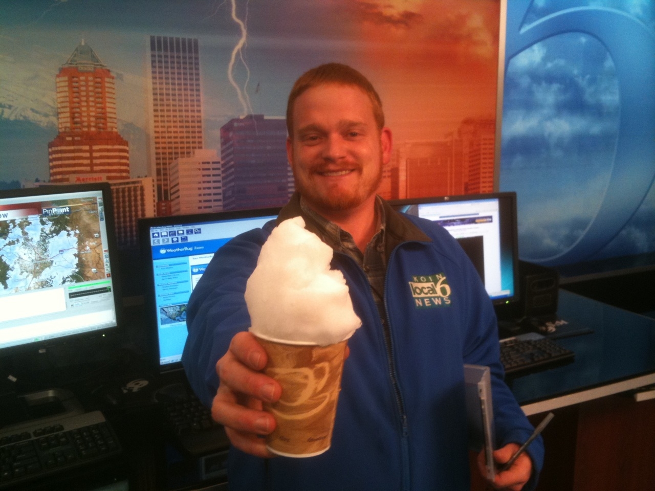 That’s the life of a television news photographer, constantly battling northwest weather. And to top it off, Matt was nice enough to bring back a ‘cup of snow’ from his live shots.