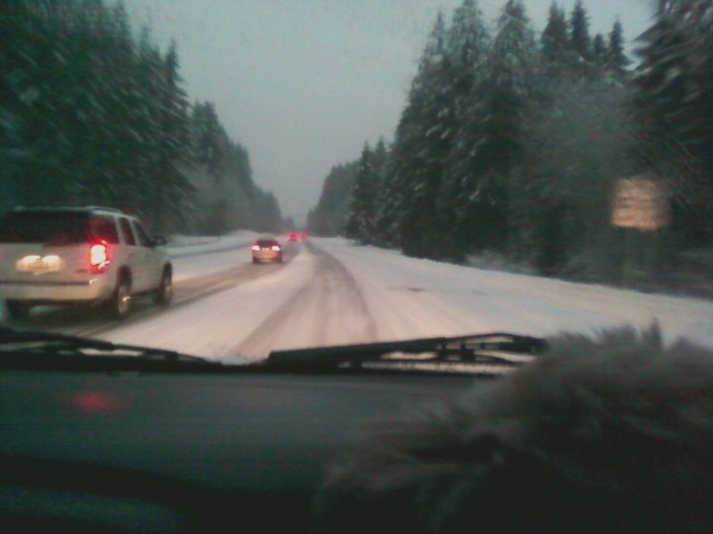 Now, here we are again in a northwest La Nina winter and the snow is already piling up in many areas including the grandparent’s neighborhood. The icicles were huge on central Oregon homes;Â we’d build a snowman and then wake up to see it covered in fresh snow; and then there was the trip over the mountains. What’s crazy, is that the trip over the Coast Range and the Cascades looked about the same on Thanksgiving – lots of snow (see pics below). It’s another sign of La Nina: unusually low snow levels.