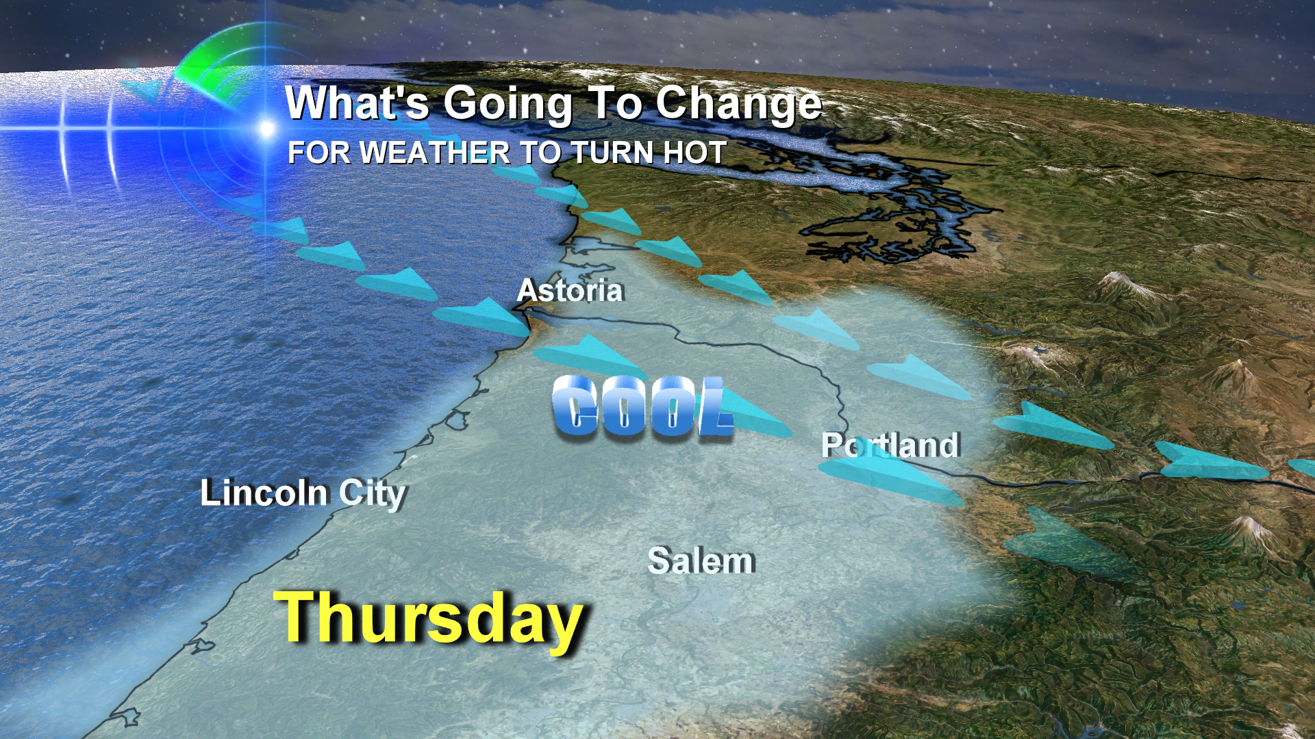 Friday winds should be coming from the northeast into Portland-Vancouver and Salem and down to many of our beach cities at times. This is a hot wind that actually generates its own heat as it comes down the mountains into the valley and down the coast range onto the beach. That takes a 90 degree day and helps us get to 95-100 degrees.
