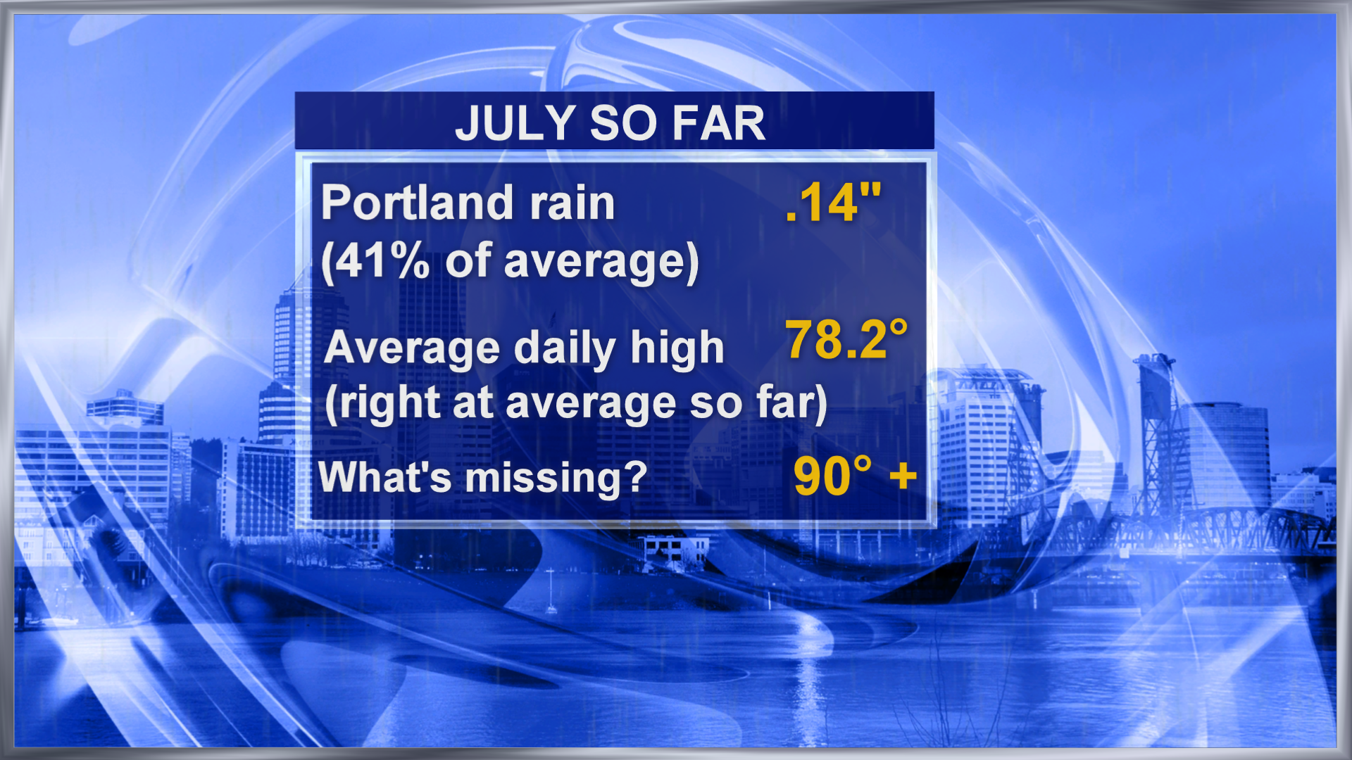 But missing is something hot weather lovers like myself have really noticed: uh, hot weather! Typically, Portland sees it’s first 90 degree day of the year by mid-late June. Now here we are, mid-July, with no 90s in sight.