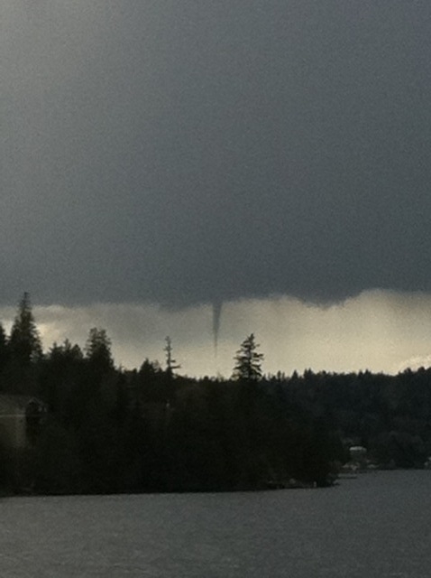 The cool and unsettled weather lead to some ‘cold core funnel clouds, too, like this one north of Seattle. These funnels usually appear and then vanish without touching down–but they’re still spooky!