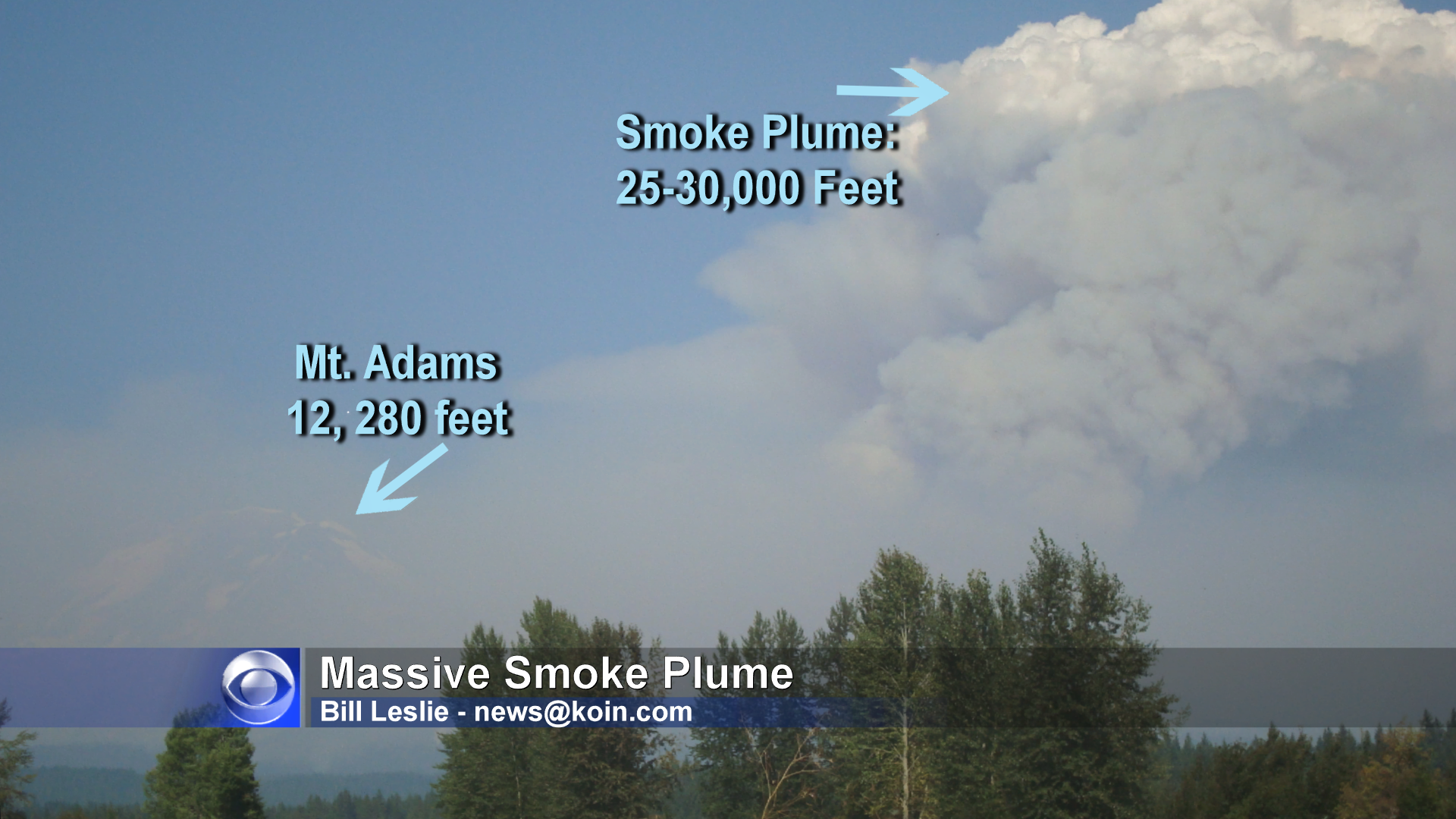 Speaking of things towering in the sky, this shot shows a massive smoke plume from the wildfire near Mt. Adams, Washington. It makes the mountain look more like a hill!