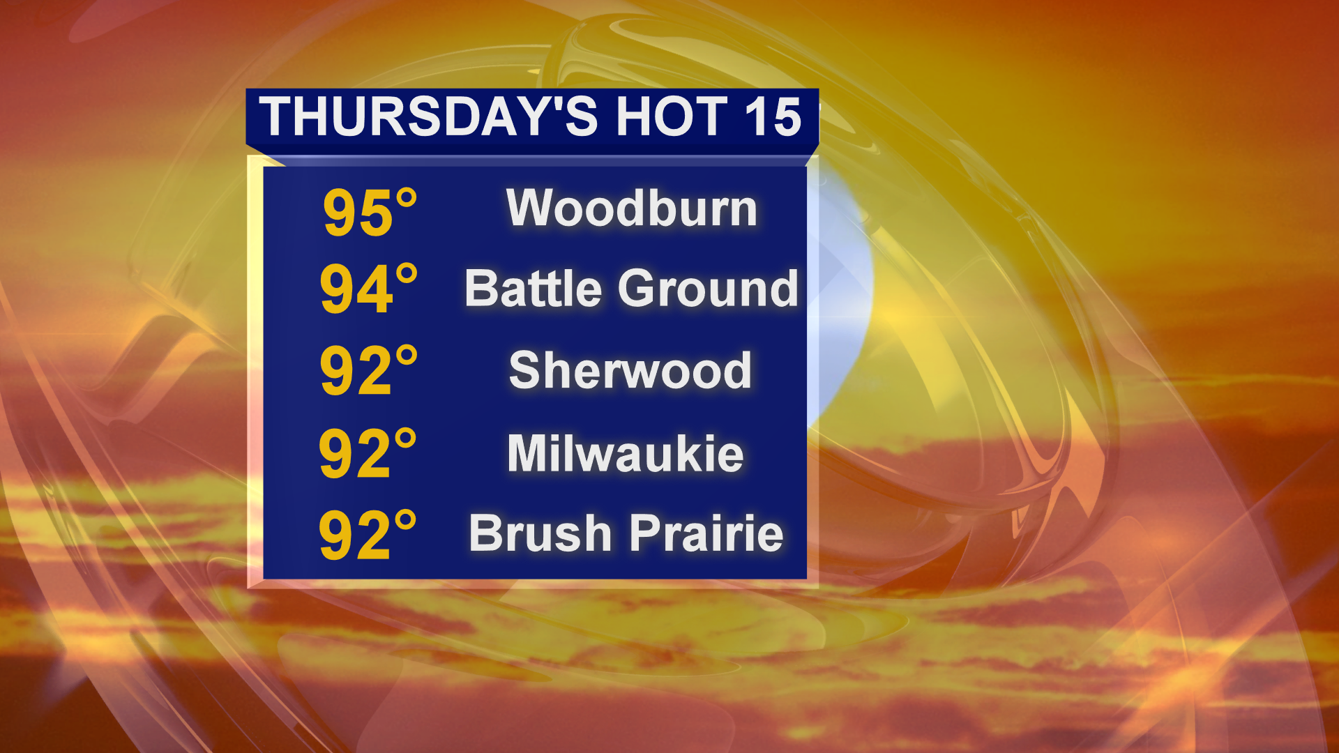 Temperatures soared on Thursday September 14, 2012. These were the 5 hottest cities (part of the ‘hot 15’ as I called them on the news) that day. Portland stopped at 89.