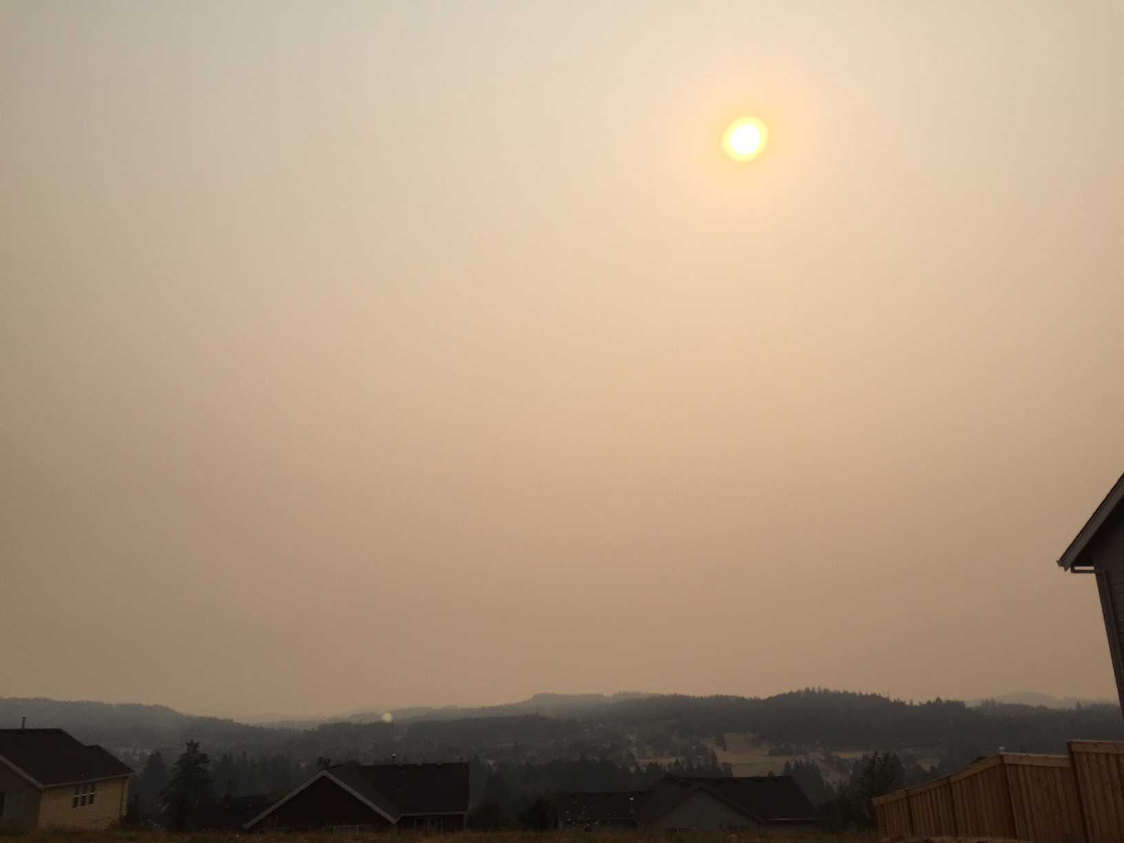 I have to agree–skies are looking other-worldly for many of us right now. In this picture, you’d normally have a clear view of Mt. Hood but it (and most of the orange sun) are lost on the smoke.