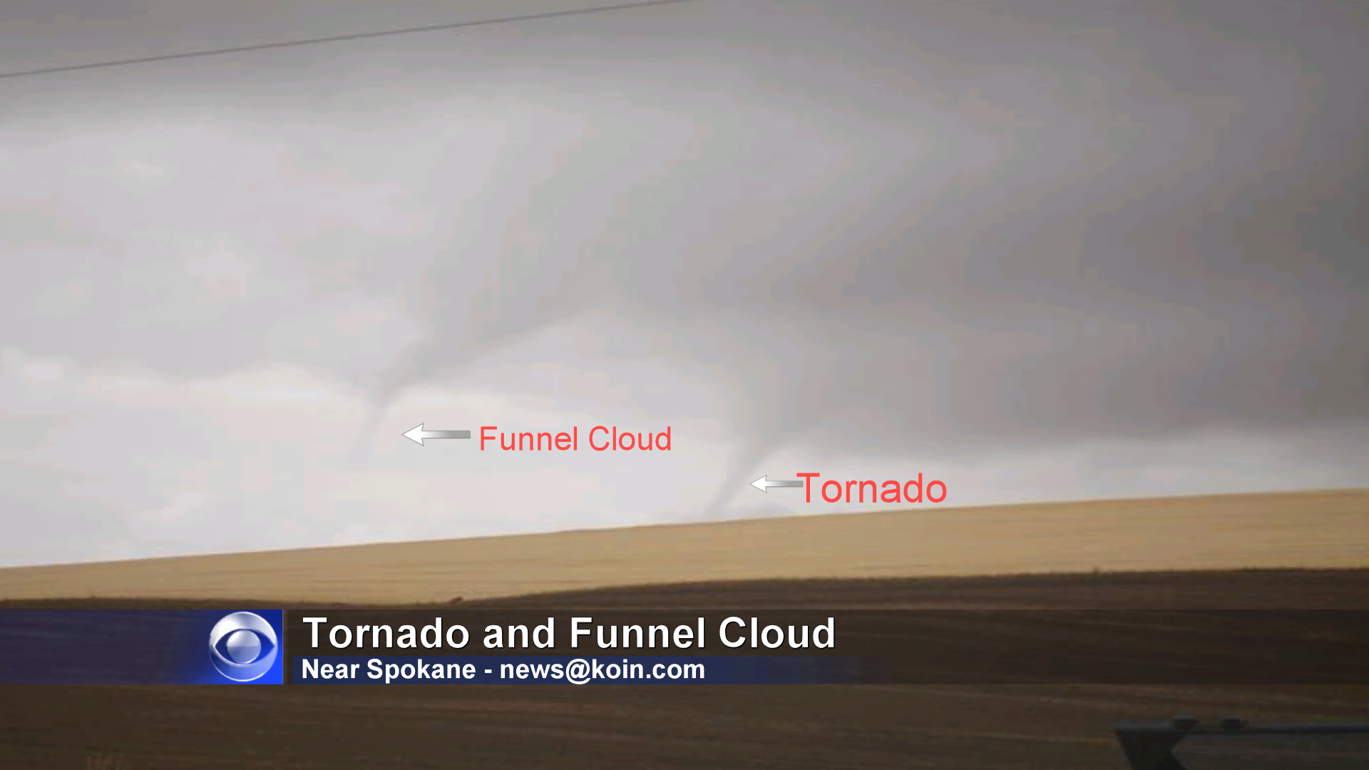 It was out over farm country southwest of Spokane where the winds can really whip around. In this picture, you're looking at a tornado (which is actually touching the ground) and a funnel cloud. A funnel cloud is a rotating cloud but by definition, does NOT touch the ground. This all happened … [Read more...]