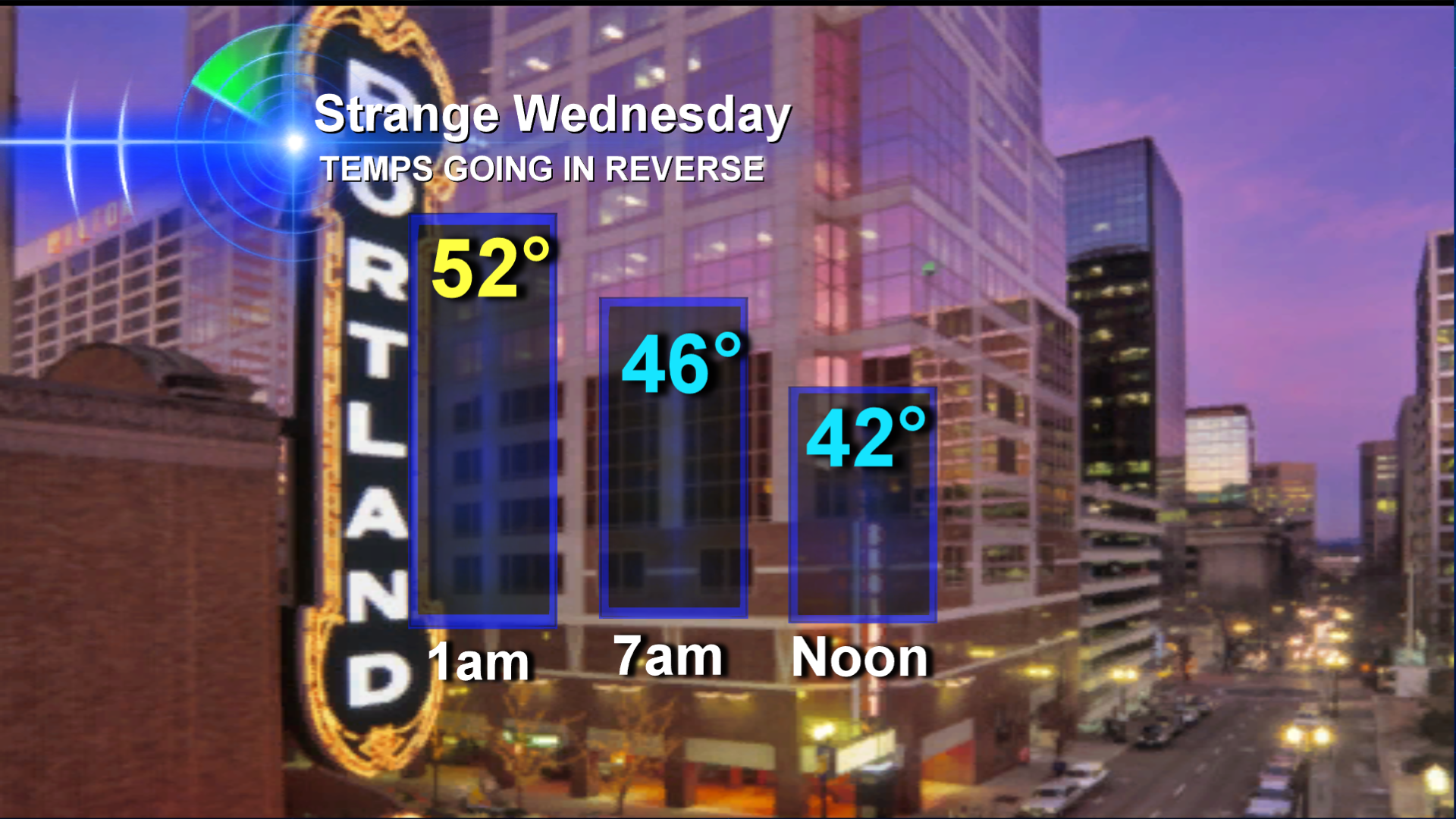 Ready to go in reverse? That's what our temperatures will do Wednesday. 50s at 1am. 46 degrees around breakfast. 42 at lunch time. And dropping to 39 degrees for the evening commute. Yep, it's a sign of colder air racing into our skies. And it'll feel extra cold because Portland's high … [Read more...]