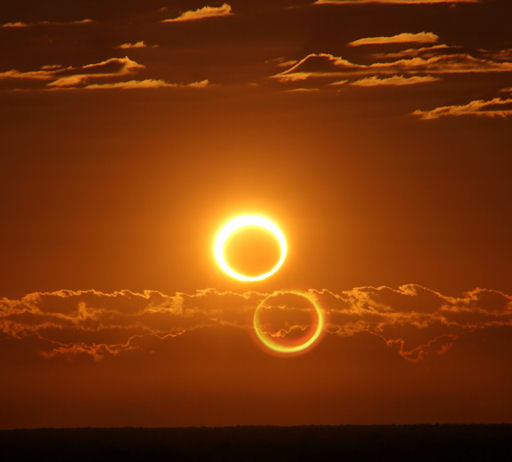 This is a picture of the so-called “Ring Of Fire” where the moon passing in front of the sun is not quite big enough to cover the entire sun as we see it.