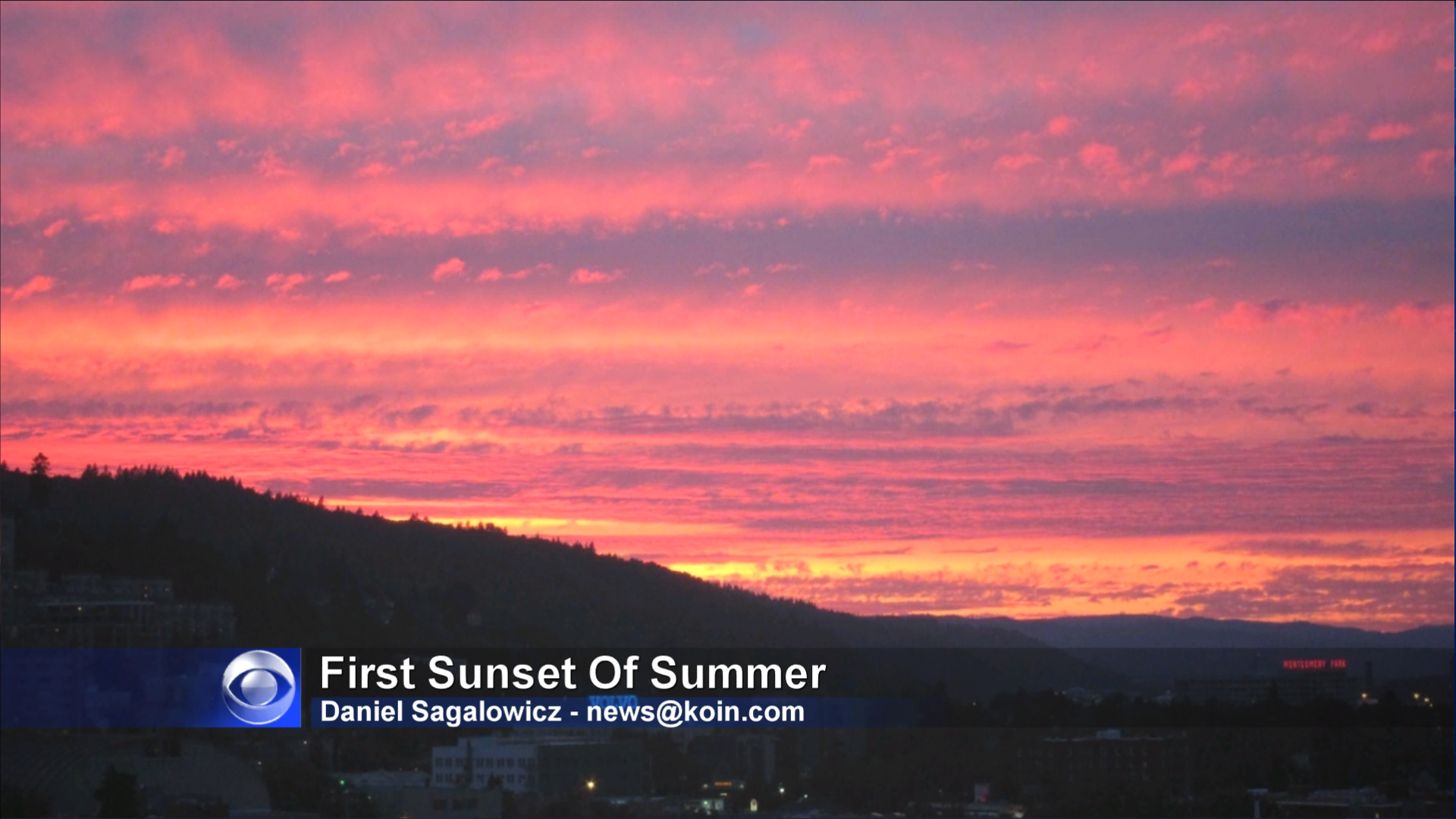 You’ve gotta love this sunset shot Daniel sent in of the sunset of summer on June 20, 2012. His camera was aimed toward the West Hills and Northwest Portland in this picture.