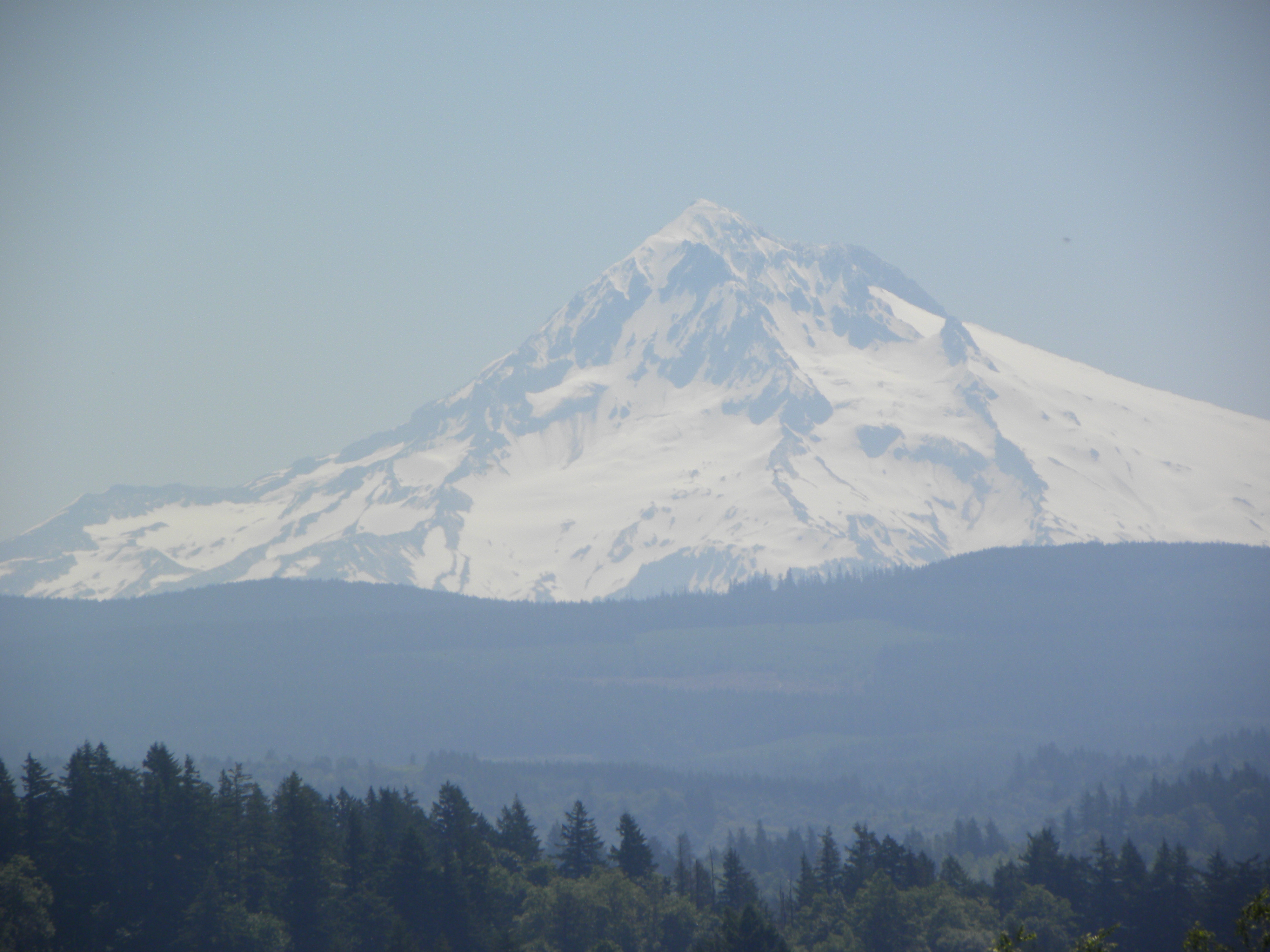 Louis Bowerman took this shot of Mt. Hood–showing more and more brown by the day. It was so warm on the mountain on June 21, 2012 that the snow became quite soft and that may have lead to the fall of a man climbing the mountain on the day the picture was taken. The climber was injured but survived.