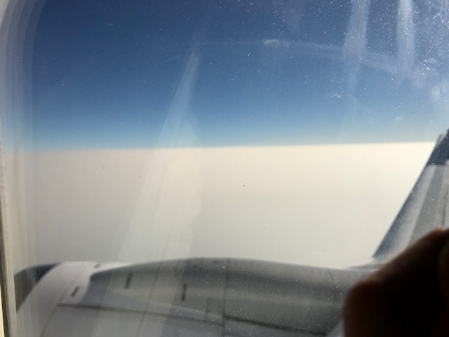 As the airplane climbed above that layer, we were looking down on a blanket of smoke so bright & so thick we could not see the ground. (Below)
