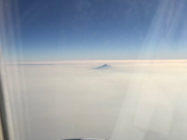The layer of smoke became even thicker as the flight crossed into Northern California. Look at the mountain peak poking out of the smoke! (Below)